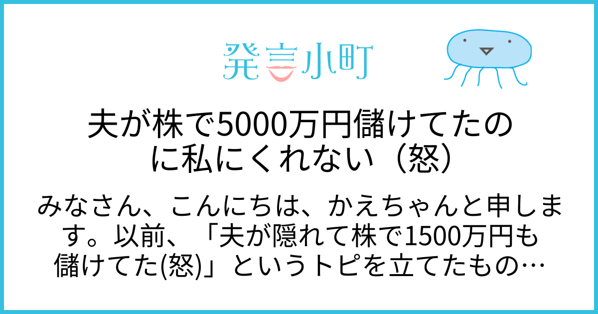 出典:発言小町「夫が株で5000万円儲けてたのに私にくれない(怒)」より一部引用