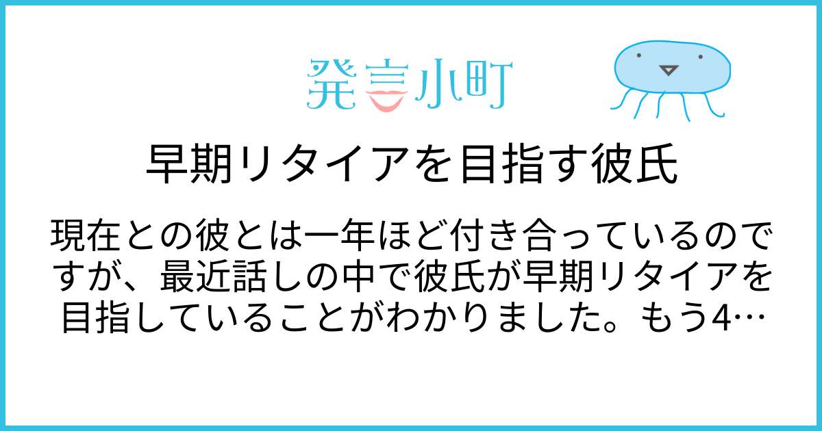 出典:発言小町「早期リタイアを目指す彼」