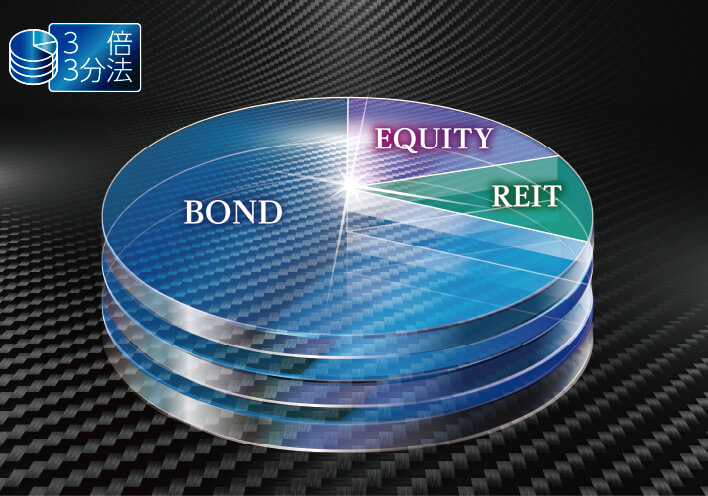 債券/株式/REITを最も効率的なリスクテイクとなるよう配分し、レバレッジで3倍に膨らませたファンドです。